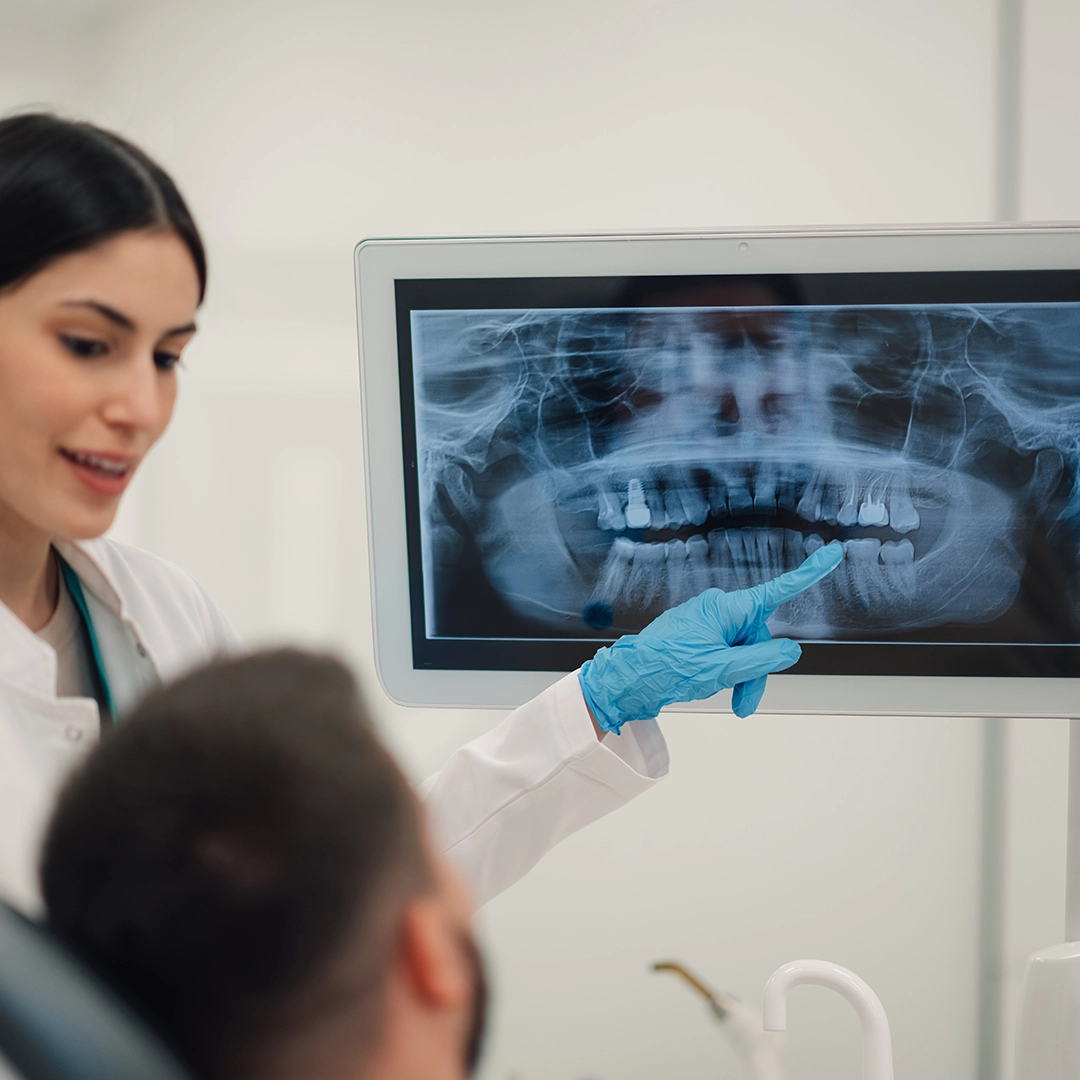 Digital X-ray technology enables instant imaging and detailed assessment of teeth, roots, and surrounding bone.